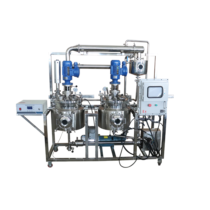 主要配件:提取罐、濃縮罐、攪拌電機、冷凝器、冷卻器、油水分離器、進料口、加熱器、過濾器、溫度控制器、出料閥、機架、控制柜、真空泵等內外焊縫拋光300目,三層保溫,敞開式結構